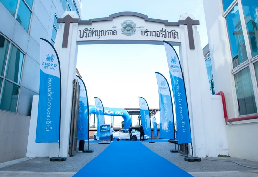 ธงผ้าคุณภาพสูง ลมสามารถวิ่งผ่านได้ทำให้ไม่เกิดการพลิกคว่ำ ฐานพลาสติกบรรจุน้ำ งานพิมพ์สีธงผ้าคมชัด ทนแดดฝนได้ระยะเวลานาน
